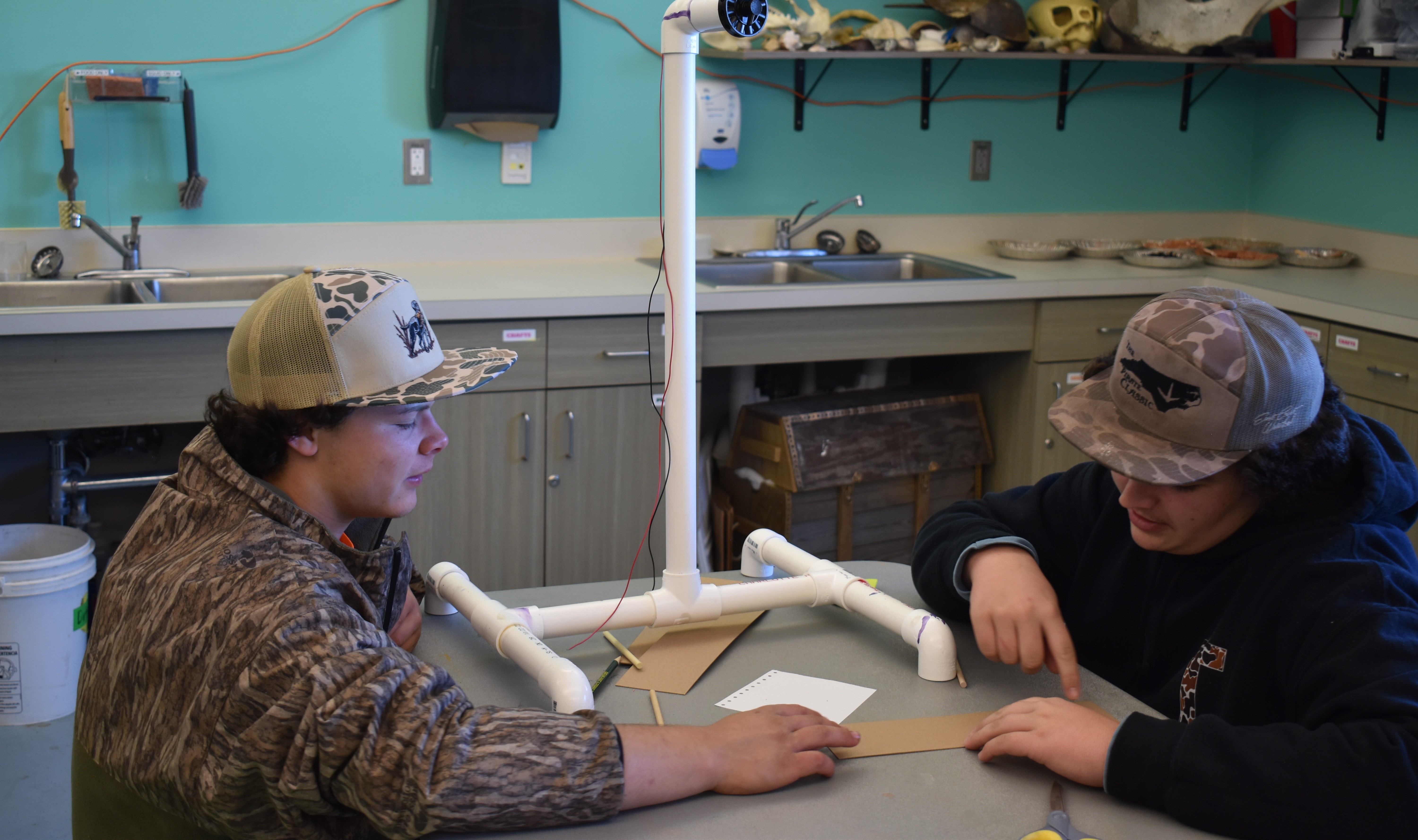 Scholars discovered the Science behind Renewable Wind Energy in a program where they constructed their own wind turbine and competed in small groups to see which group's turbine created the highest voltage.